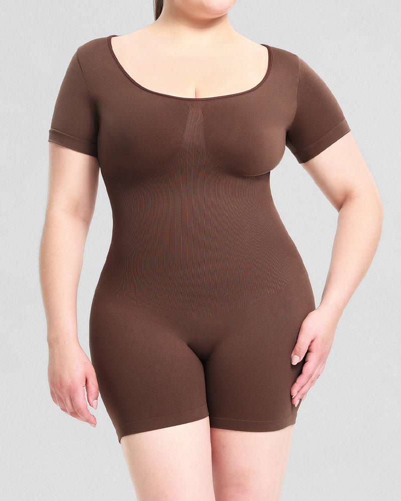 Dieser Overall verfügt über ein elegantes Kurzarmdesign und einen klassischen Rundhalsausschnitt und sorgt für einen vielseitigen und stilvollen Look. Die Bauchkontrolle und die nahtlose Po-Lifting-Funktion sorgen für eine schmeichelhafte Silhouette, während die körperformenden Eigenschaften für ein glattes und geformtes Erscheinungsbild sorgen. Ganz gleich, ob Sie ihn als Einzelstück tragen oder unter Ihren Lieblingsoutfits schichten: Dieser Overall betont Ihre natürlichen Kurven und bietet ganztägigen Komfort.