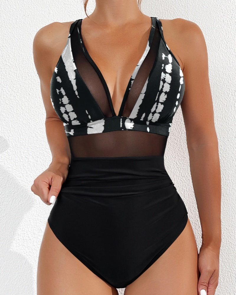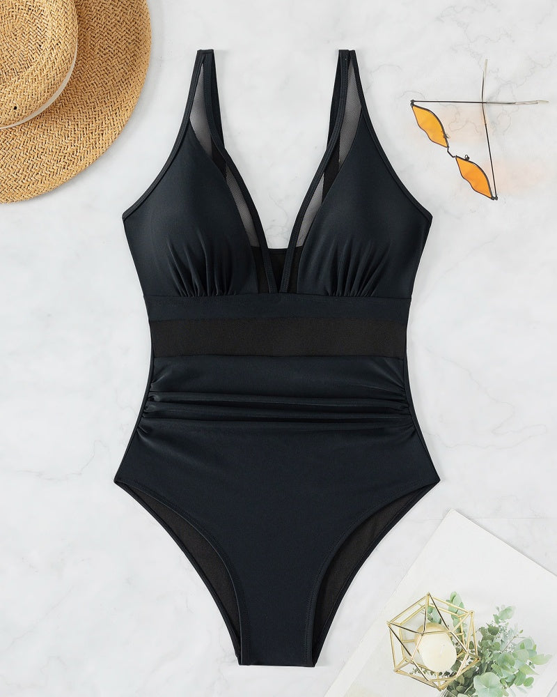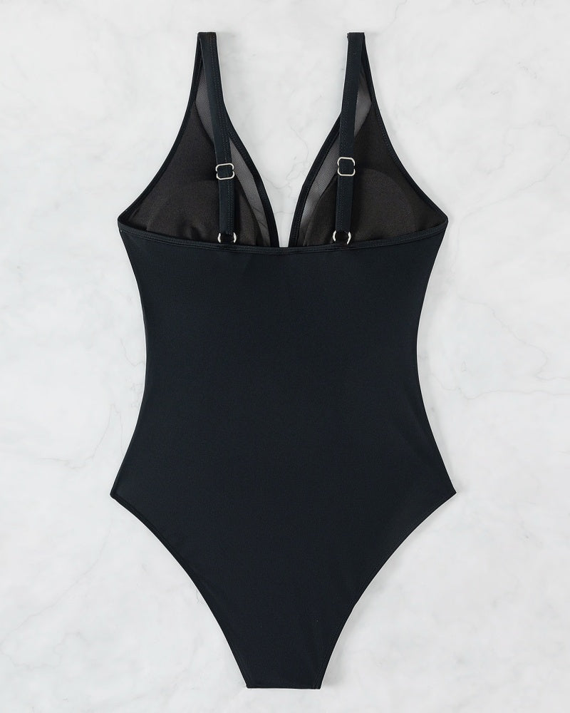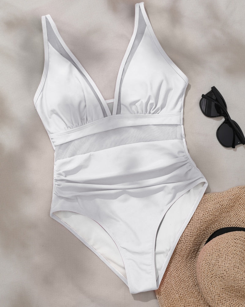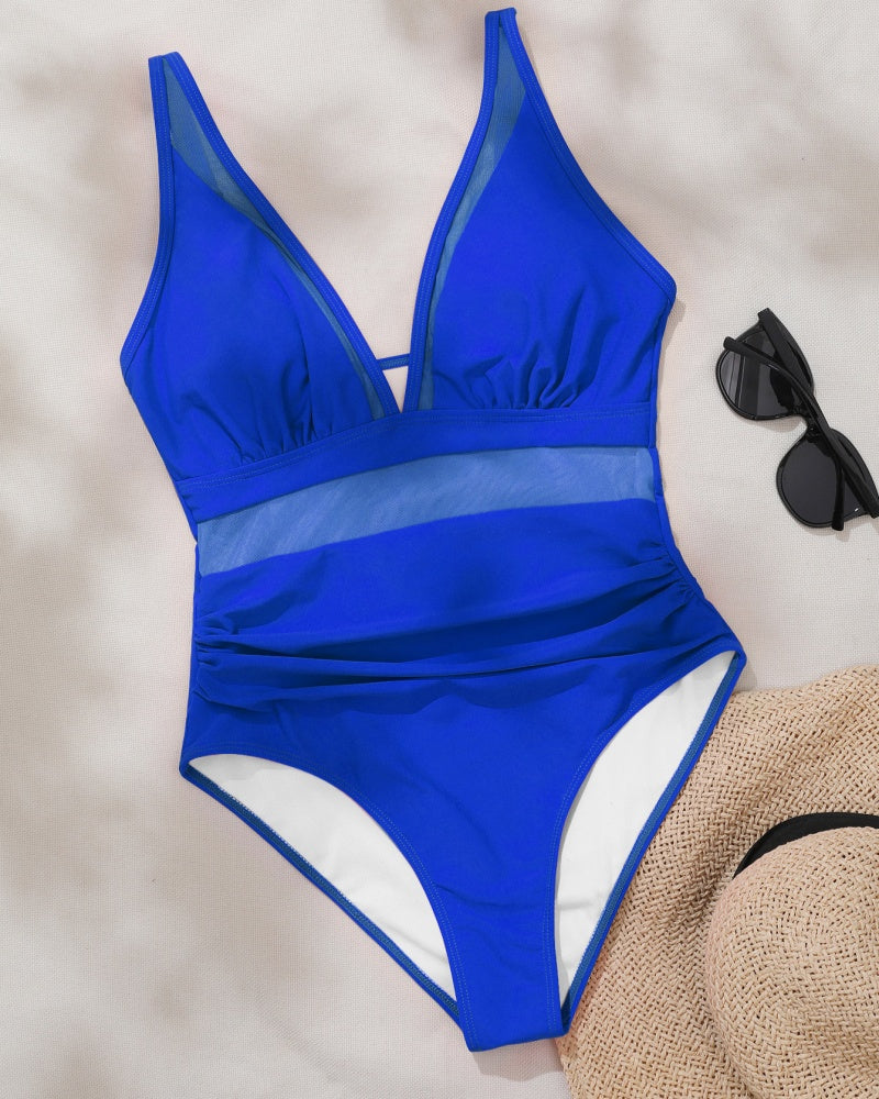 Dieser Badeanzug ist raffiniert mit Netzverzierungen verziert, die ihm einen Hauch von Geheimnis und Romantik verleihen; das tiefe V-Design betont Ihr bezauberndes Schlüsselbein und Ihre atemberaubenden Kurven, sodass Sie Ihren bezaubernden Charme am Strand oder am Pool zur Schau stellen können!