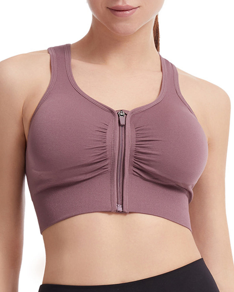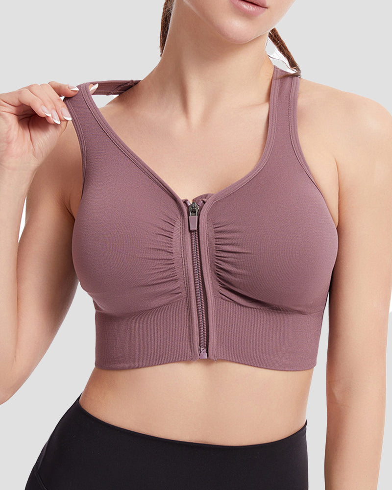 Damen Stoßfester Hohlrücken Frontreißverschluss Push Up BH