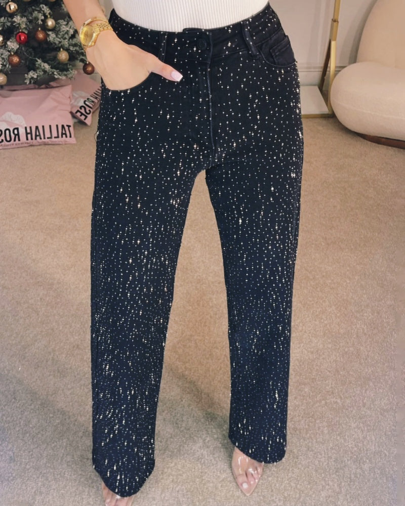 Modische Jeans mit Geradem Bein und Strassverzierung für Damen