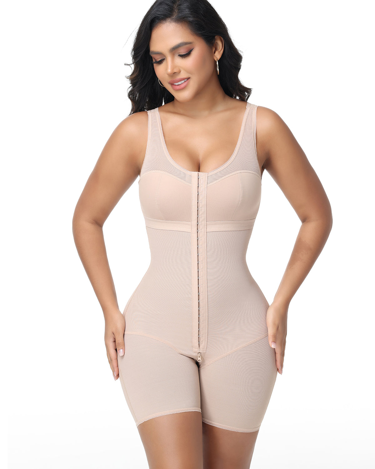 Diese Shapewear zur Bauchkontrolle reicht bis zur Mitte der Oberschenkel und formt und hebt Po und Brust sowie die Oberschenkel. Das atmungsaktive Mesh-Material ist bequem und lässt sich den ganzen Tag lang tragen. Es passt sich perfekt Ihren individuellen Kurven an und sorgt für optimale Luftzirkulation.