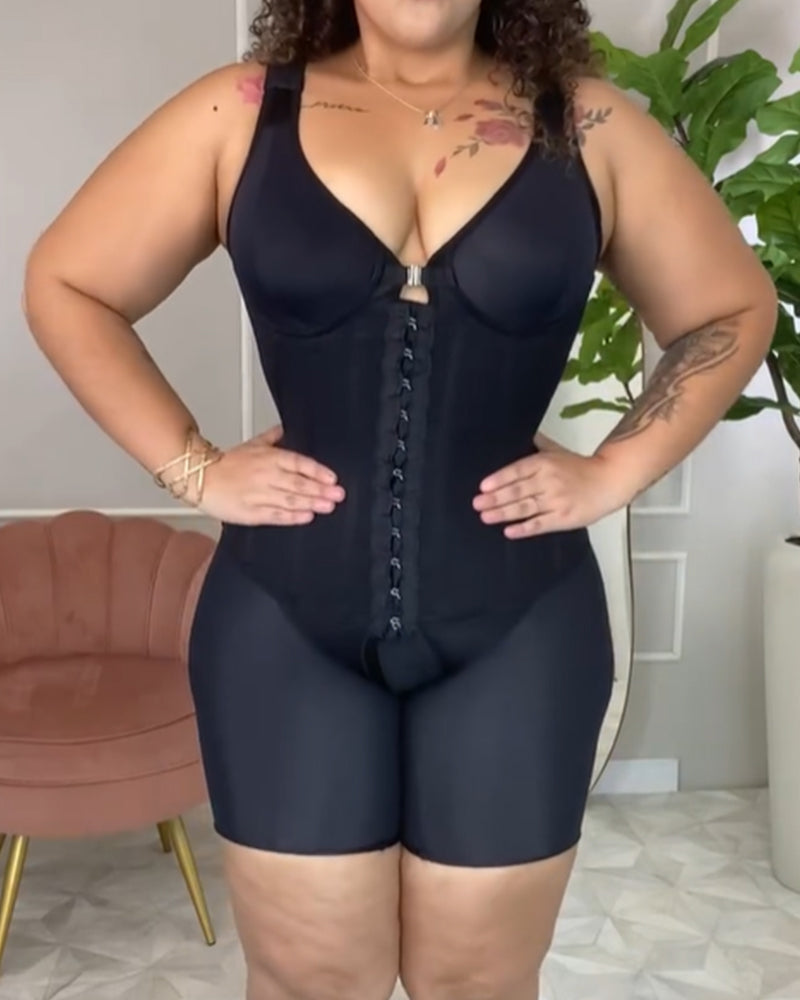 Deep-V-Body Shaper mit starker Kompression und Metall-Bust-Detail (Vorverkauf)
