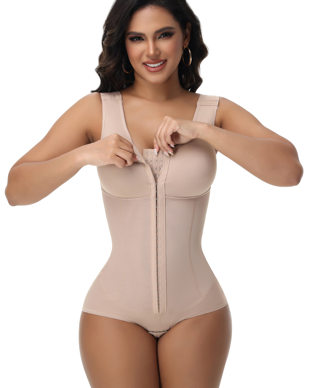 Diese bauchwegformende Shapewear passt sich an, formt und stützt bei Bedarf. Sie verfügt über ein einfaches An- und Ausziehen mit Haken- und Ösenverschluss für Halt und Sicherheit. Sie hebt die Hüfte an und verbessert die Hüftlinie, während sie gleichzeitig den Bauch strafft und so für ein perfektes Taille-Hüft-Verhältnis sorgt.