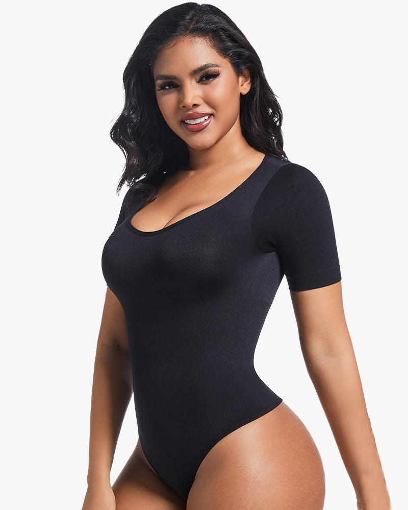 Dieser Body mit Rundhalsausschnitt und kurzen Ärmeln eignet sich perfekt zum Tragen unter Ihren Lieblingsoutfits oder auch solo. Die nahtlose Konstruktion garantiert eine glatte Passform und betont Ihre natürliche Silhouette. Das weiche, atmungsaktive Material bietet ganztägigen Tragekomfort und formt sanft Ihre Taille. Ob Sie sich für einen Abend schick machen oder Unterstützung im Alltag suchen – dieser vielseitige Body ist die perfekte Lösung.