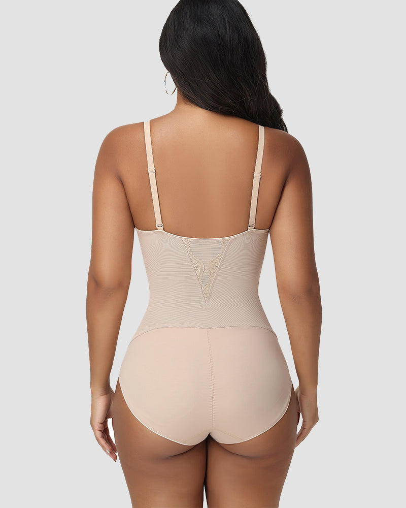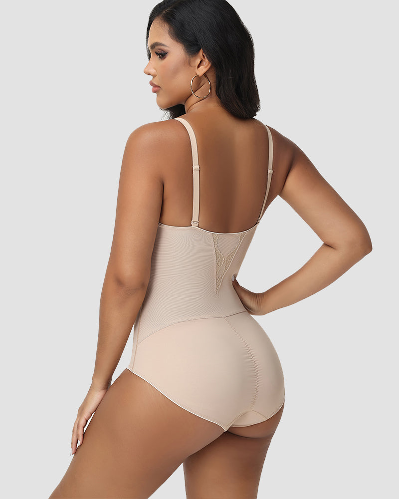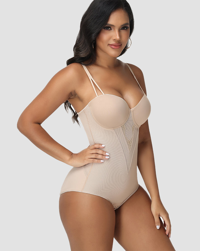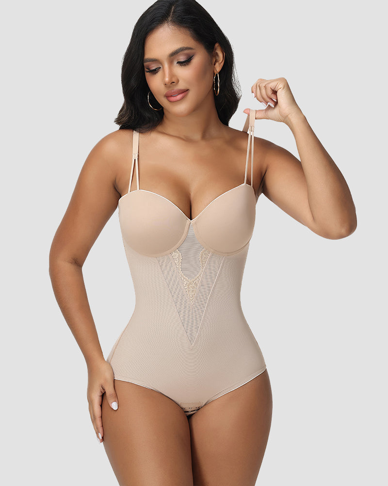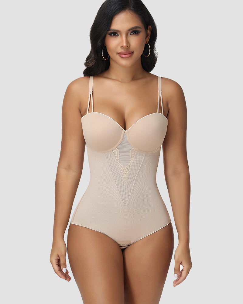 Ein nahtloser, formender Body, der den Halt eines Bügel-Bustiers mit gezielter Bauchkontrolle kombiniert. Zarte Spitzendetails und verstellbare Träger sorgen für einen eleganten, unsichtbaren Look unter jedem Outfit.