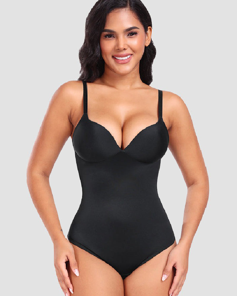 Shapshe® Damen Glatter Push-Up Bauchkontrolle Tanga Ärmelloser Body Shapewear