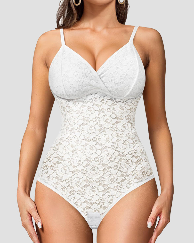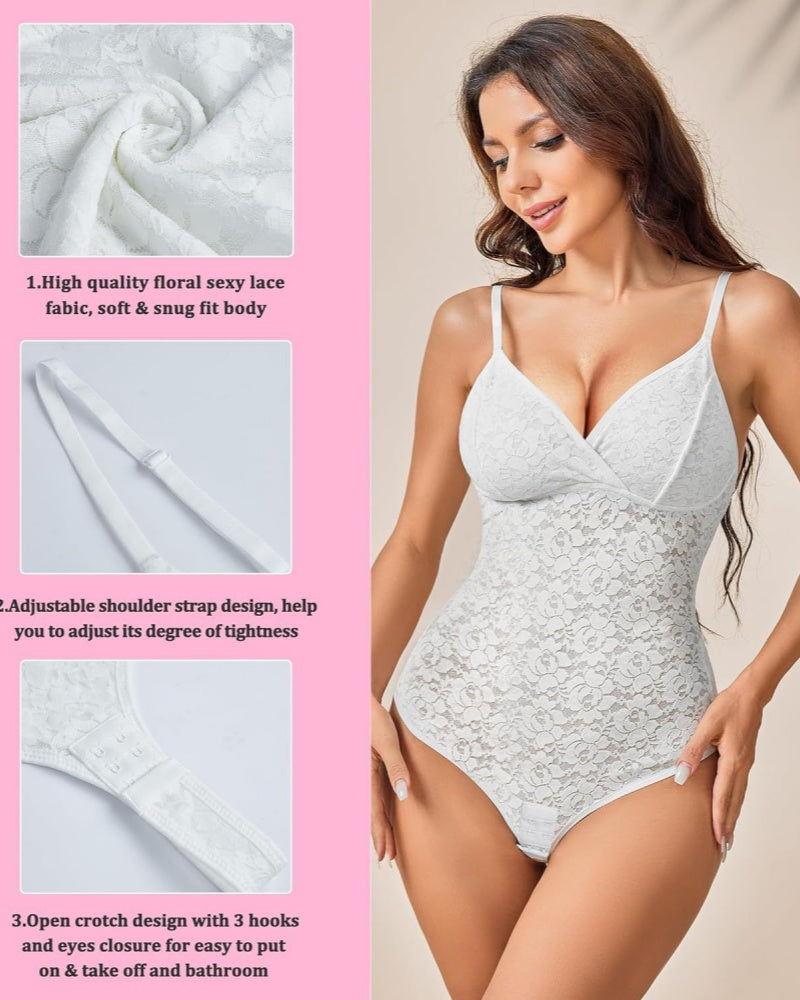 Dieser Body mit V-Ausschnitt betont das Schlüsselbein, verleiht femininen Charme und zaubert einen bezaubernden Ausschnitt. Spitzenverzierungen verleihen eine elegante und romantische Atmosphäre und betonen den sanften Charme einer Frau!