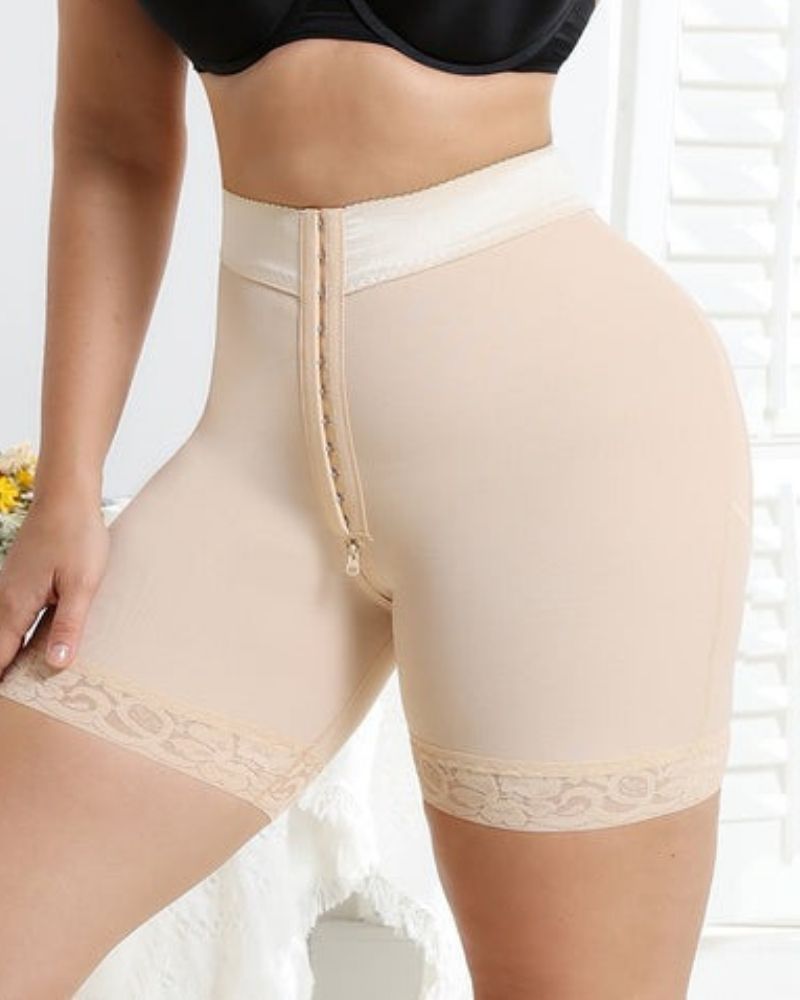 Shapshe® Beigefarbene High Waist Po-Lifter Spitzenshorts