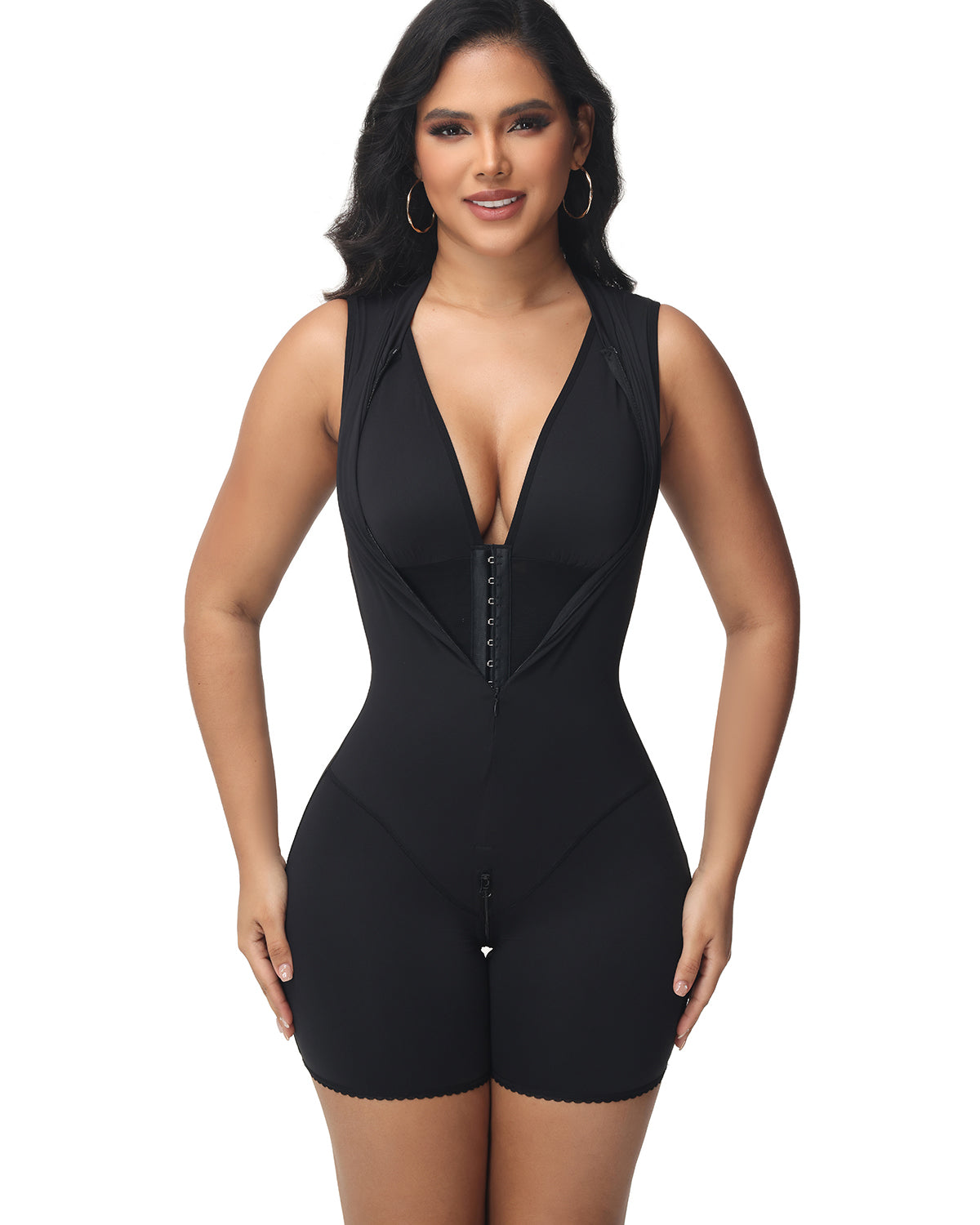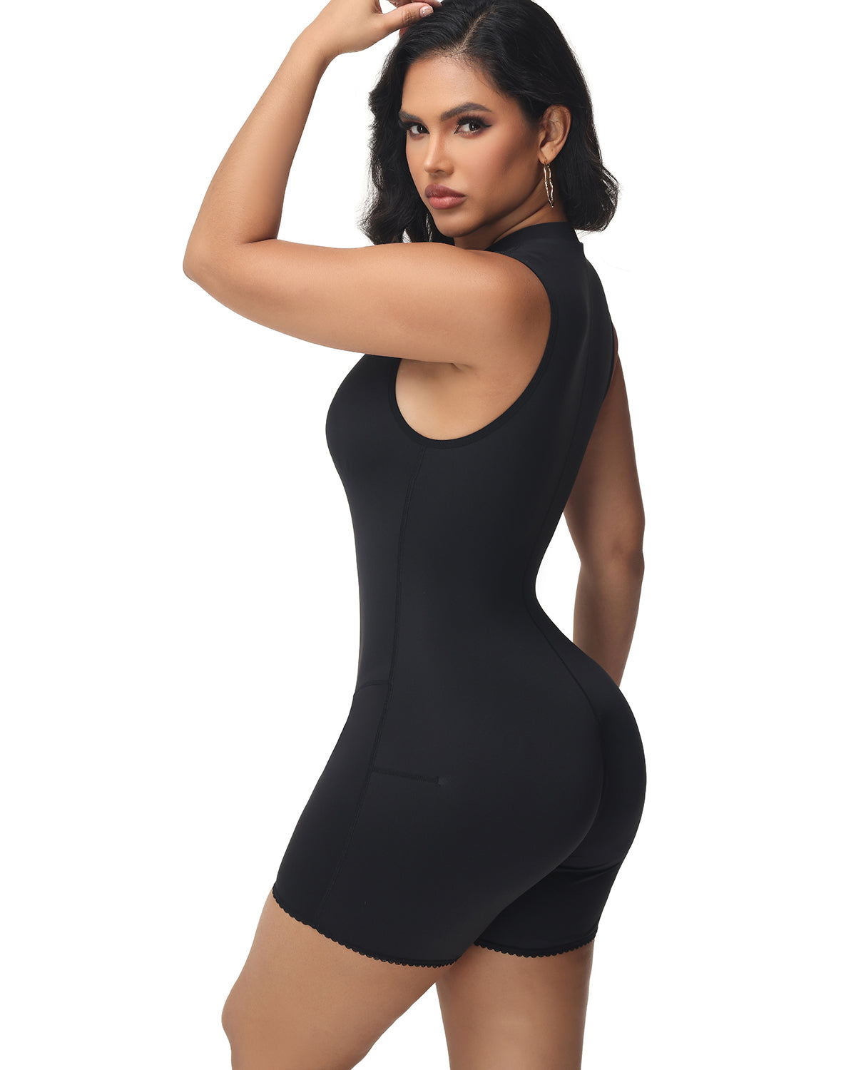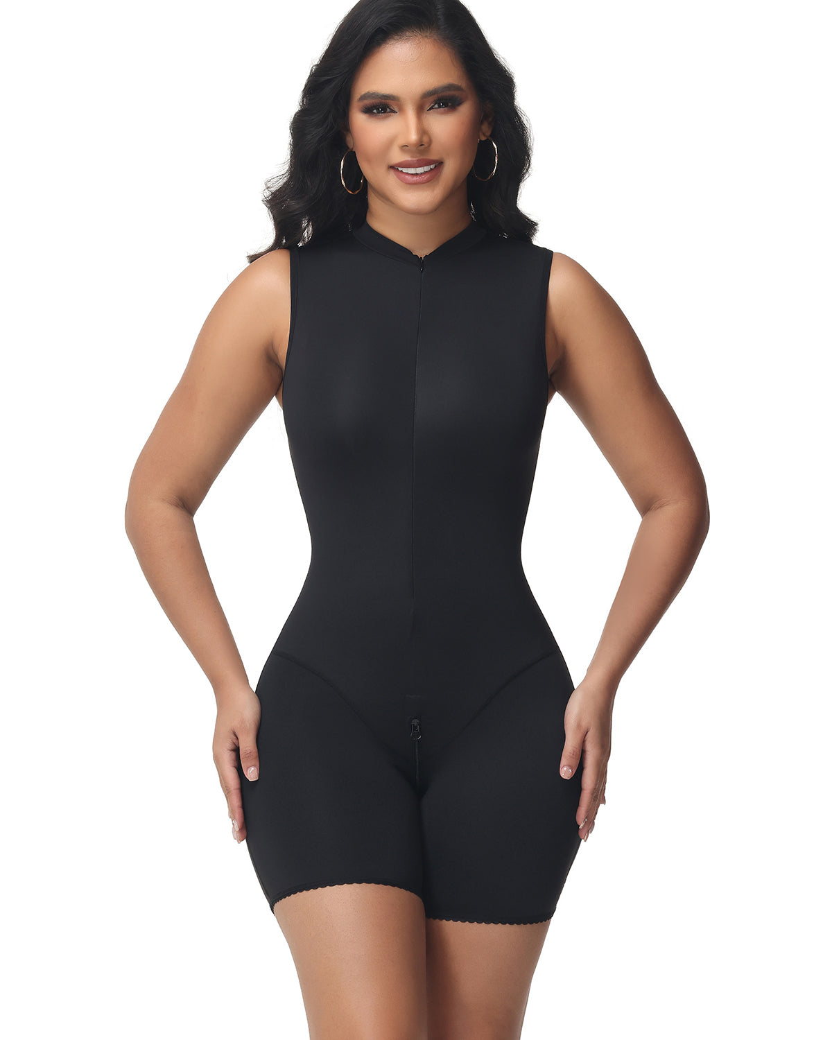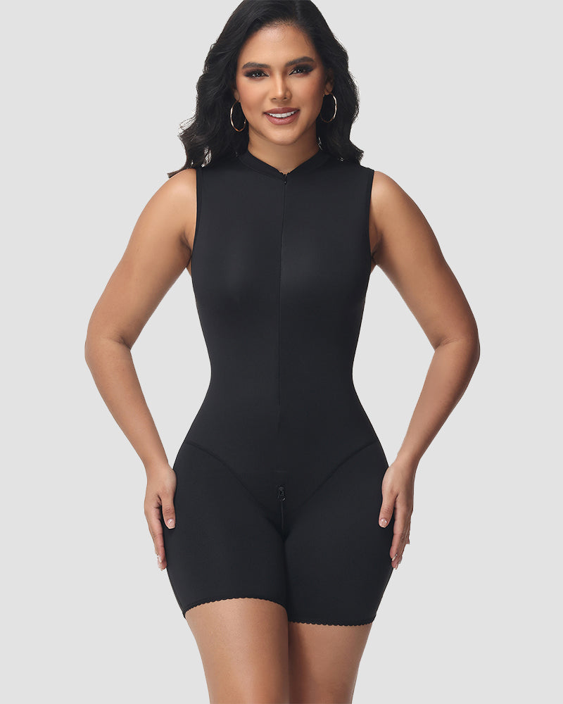 Kreieren Sie eine schlanke, straffe Silhouette und treten Sie selbstbewusst auf mit unserer nahtlosen, doppellagigen Shapewear mit Stehkragen – entwickelt, um zu glätten, zu komprimieren und zu konturieren für eine raffinierte, schlanke Figur.